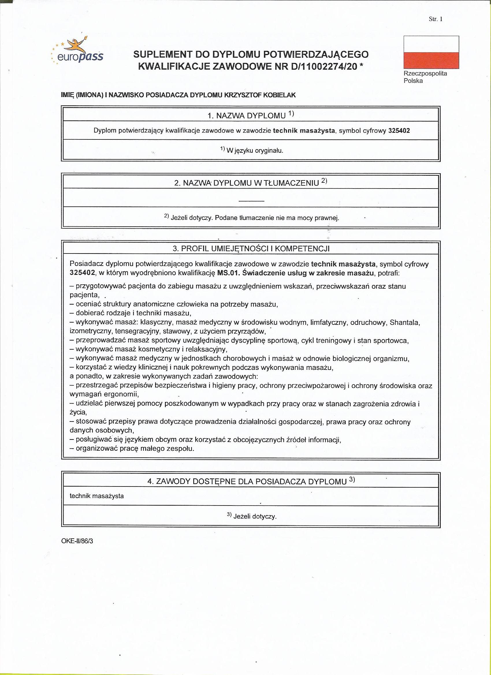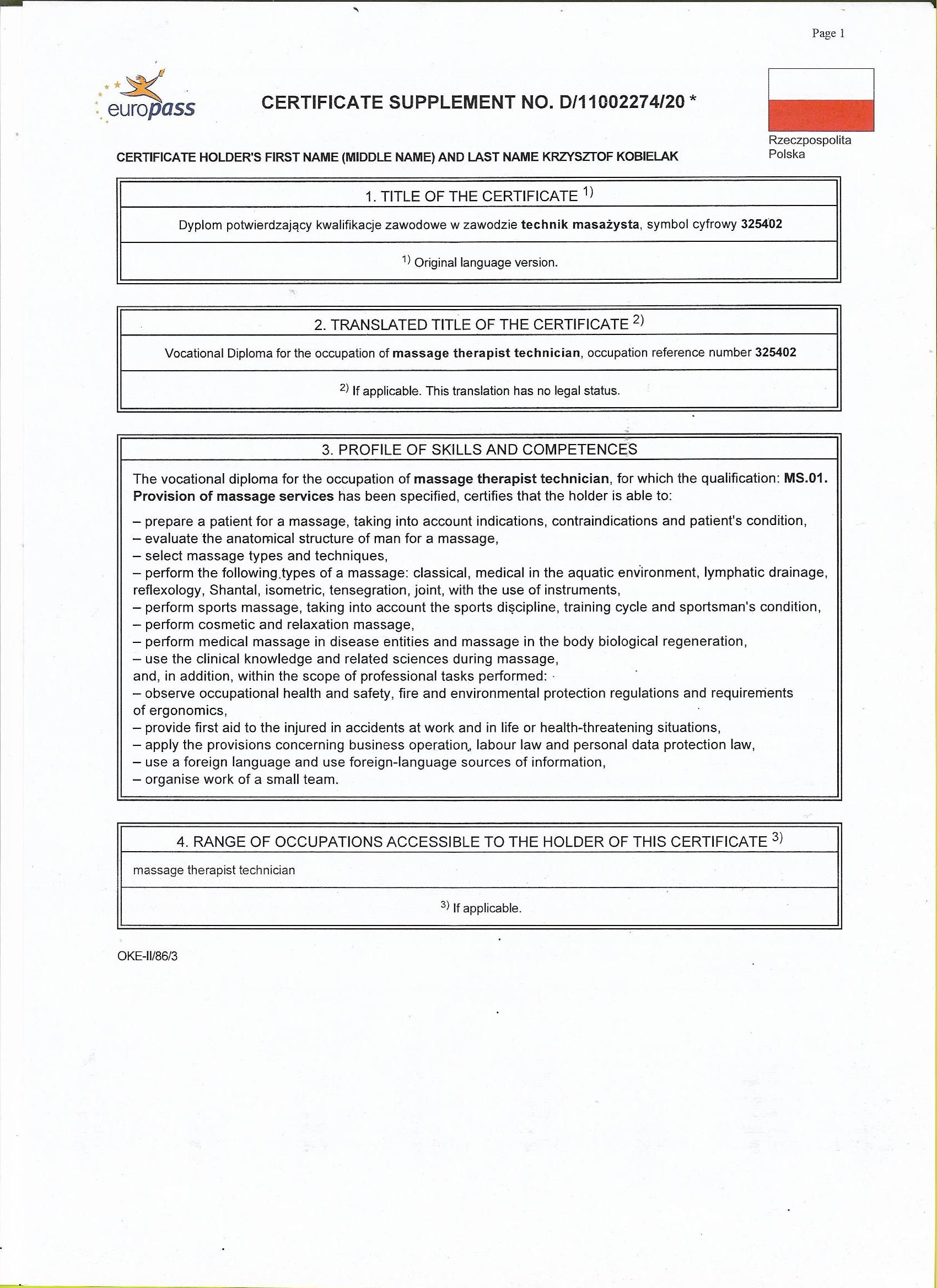 (dyplom MEN), gdzie uczyłem się sztuki masażu, by móc wykonywać go
